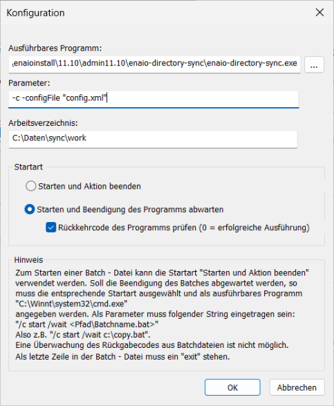 enaio® directory-sync, enaio-directory-sync.exe, wird bei der Installation der Administrationskomponenten in das Verzeichnis enaio-directory-sync kopiert.