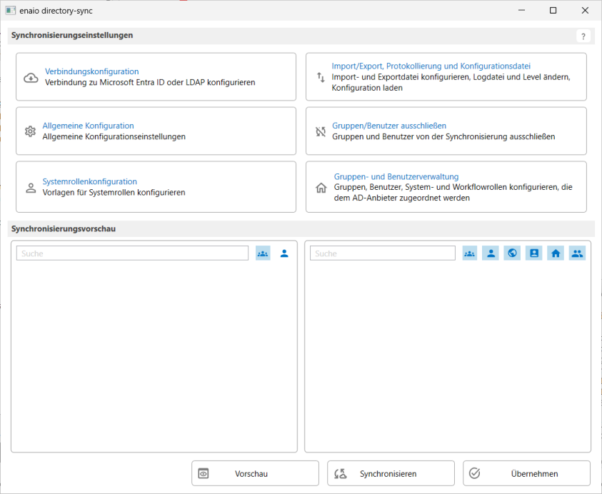Öffnet enaio® directory-sync im Konfigurationsmodus