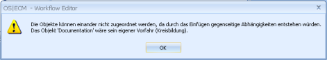 • Ziehen Sie ein Objekt auf ein Objekt, das nicht der Vorfahrenklasse zugeordnet ist, erhalten Sie einen entsprechenden Fehler-Hinweis.