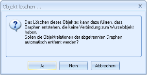 • Sind dem Objekt, das Sie entfernen wollen, Objekte untergeordnet, erhalten Sie folgenden Hinweis: