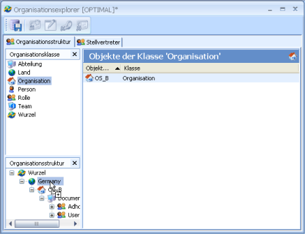 • Die Objekte der Klasse werden im Bereich Objekte der Klasse 'Organisation' aufgelistet.
