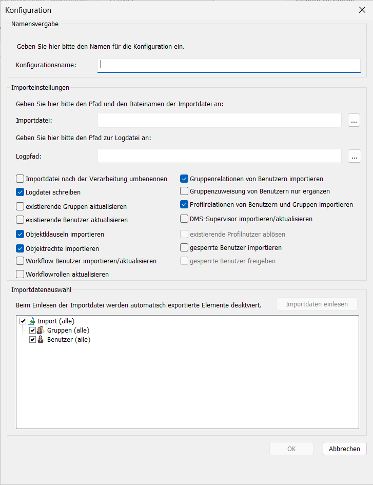 Aktion 'Benutzer/Gruppen Import'