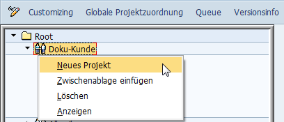 Über die Projektgruppe können im Customizing-Baum verschiedene Projekte zusammengefasst werden. Beispiel: