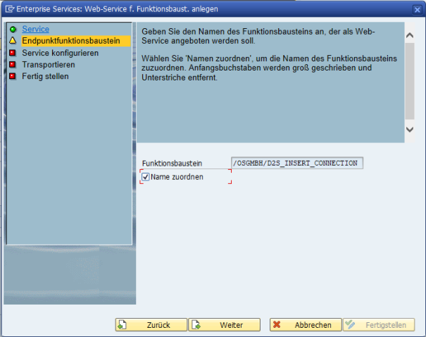Ausgangspunkt für die Generierung eines anderen Enterprise Service ist ein funktionierender RFC-fähiger Funktionsbaustein.