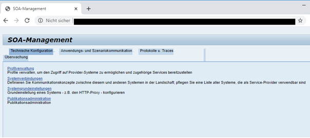 Die Administration des Webservice erfolgt über die Transaktion SOAMANAGER. Es handelt sich dabei um eine Web-Anwendung. Die Oberfläche dieser Anwendung ist stark von der konkreten SAP®-Version abhängig. Die nachfolgende Beschreibung kann daher nur eine Orientierung darstellen. Beachten Sie, dass alle Einstellungen im Rahmen des Deployments in jedem SAP®-System separat durchgeführt werden müssen. Die Einstellungen können nicht transportiert werden.