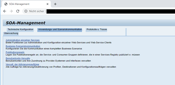 Um einen konkreten Webservice zu administrieren, wählen Sie den Tab Anwendungs- und Szenariokommunikation.