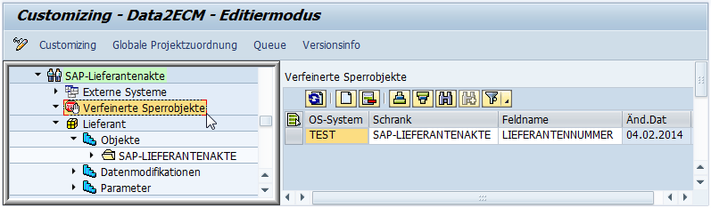 Concurrent write accesses must be prevented when transferring data from SAP® to the enaio® system. Access is locked at a cabinet level for that reason. The objects that are blocked from being filed as a result wait in the queue for the next filing job.