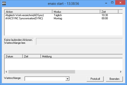When launching enaio® start, a window will open which lists all actions for which execution times have been specified.