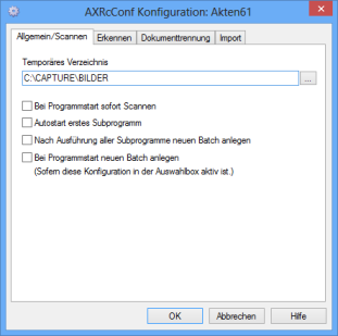 Optionally, enter a temporary directory for the images of scanned pages on the General/Scan tab, e.g., a local directory. After scanning, the images are moved from this temporary directory into the following directory: