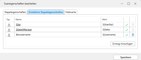 Additional entries can also be added here, and values can be assigned via the context menu.