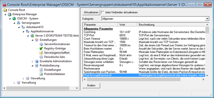 Access logging can also be activated irrespective of the general logging settings. It logs all data accesses and queries. Access logging is activated in enaio® enterprise-manager.