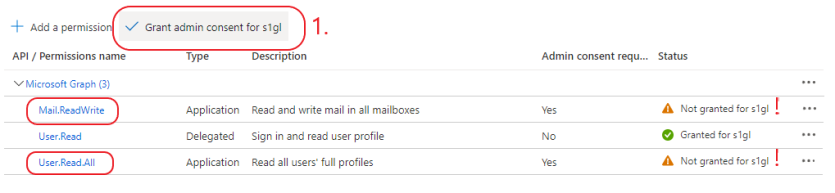 Mail.ReadWrite, User.Read, User.Read.All, Directory.Read.All, Domain.Read.All, Domain.ReadWrite.All, Group.Read.All.