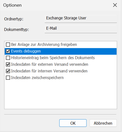 Wollen Sie Workflow-Skripte im Debug-Modus testen, markieren Sie über die Einstellungen im Bereich Weitere die Option Workflowevents debuggen.