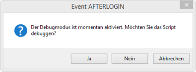 Die können mit Ja den Debug-Modus bestätigen, mit Nein das Event ausführen lassen und mit Abbrechen den Vorgang ohne Event weiterführen.