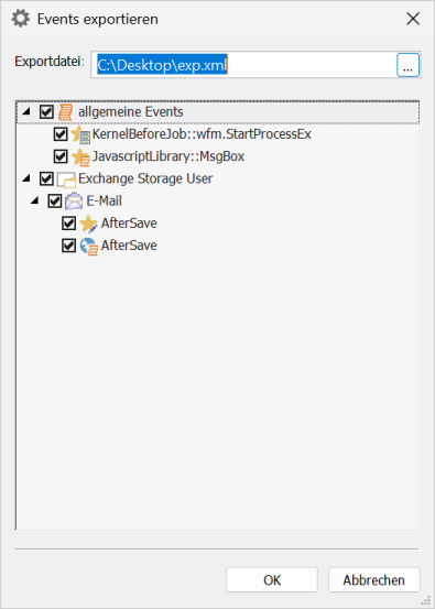 Sie markieren die Events, die exportiert werden sollen und bestätigen Ihre Auswahl per Mausklick auf OK.