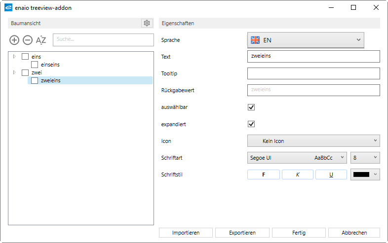 | expandiert | Aktiviert: Knoten werden expandiert angezeigt. |