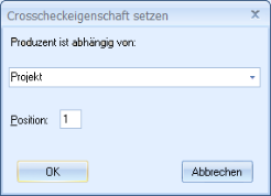 In the Crosscheck properties dialog, select the Quickfinder field from the list and enter the position for FELD01 '1'.