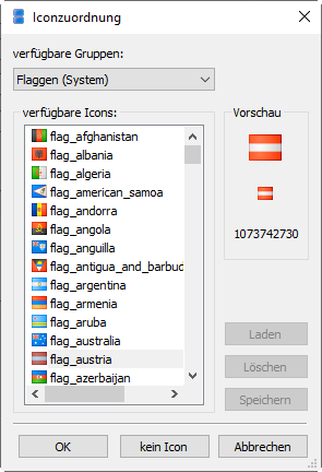 If you click on the Icon row in the properties window of an object, then the Icon assignment dialog will open.
