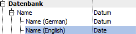 Once you have added the language, all fields for labels and tooltips will be added to the tree structure as a new field in the properties dialog. There you can edit the names of the language versions.