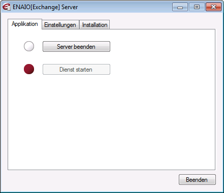 Um den enaio® exchange-server als Dienst zu starten, muss er zuvor über das Register Installation als Dienst eingerichtet werden.
