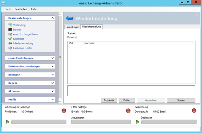 Der Bereich Monitor ermöglicht eine genaue Einsicht und Überwachung der Aktivitäten von enaio® exchange-server.