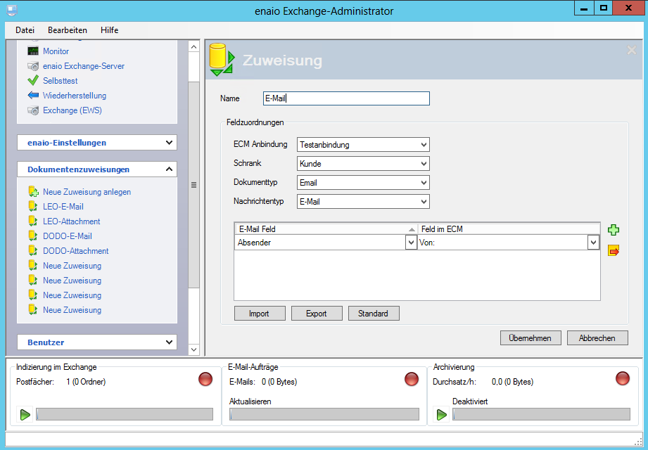 Für einen E-Mail-Dokumenttyp mit Standard-Feldern wie im enaio® editor vorkonfiguriert können Sie über die Schaltfläche Standard automatisch eine Zuordnung erstellen.