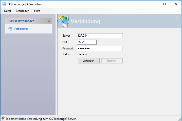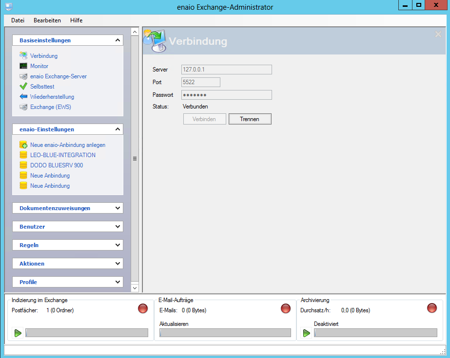 Nach dem Starten stellen Sie eine Verbindung zum enaio® exchange-server her.