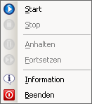 Wenn Sie mit der rechten Maustaste auf das Symbol in der Systemablage klicken, dann öffnet sich ein Menü, mit dem Sie die Anwendung steuern.