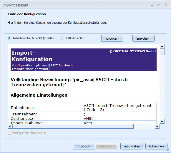 Mit der Konfiguration der Zuordnungen und Objektaktionen liegen alle benötigten Daten vor. Sie können die Konfiguration fertig stellen oder nach Angaben zur Datenbankstatistik und Protokolleinstellungen vornehmen.