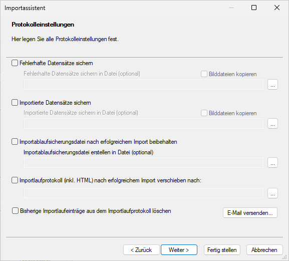 Zusätzlich können - allerdings ausschließlich für TEXT/ASCII-Importe - Datensätze protokolliert werden.