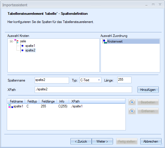 Damit sind die Importdaten ausreichend beschrieben und können in den Dialogen für die Feldzuordnung zum Importziel konfiguriert werden.