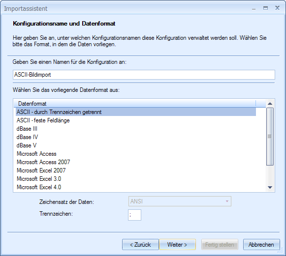 Specify the separator during configuration of TEXT/ASCII imports with separators. This character may not be present in any of the import values, because it would lead to false assignments.