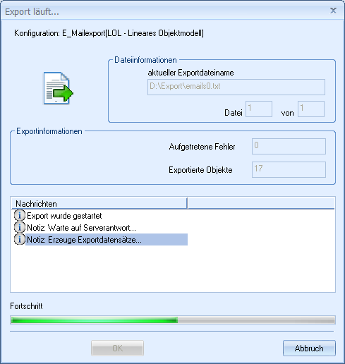 When you start an export, an information window is shown.