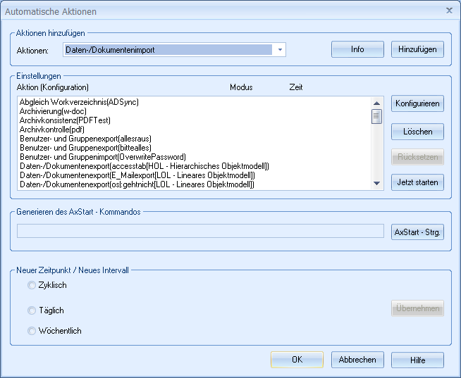 For automatic actions, you can also enter a time at which the actions should be started automatically by enaio® start. enaio® start start must be running at this time, or else the actions will not be executed.