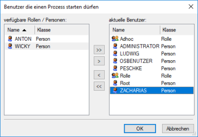 - Benutzer sind die Personen oder Rollen aus der Organisation, die einen Vorgang des Workflowmodells starten können.
