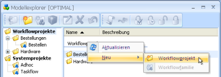 Workflowfamilien legen Sie über den Modellexplorer an: