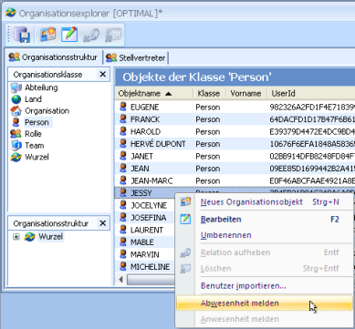 Diese Funktionen erreichen Sie über das Kontextmenü der Objekte der Klasse 'Person'.