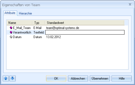 Über das Kontextmenü oder die Schaltfläche Bearbeiten öffnen Sie den Eigenschaftsdialog eines Objekts und bearbeiten die Werte für die definierten Attribute der Klasse: