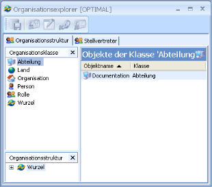 Jeder Organisationsklasse werden Objekte zugeordnet. Die Objekte fügen Sie in die Organisationsstruktur ein.