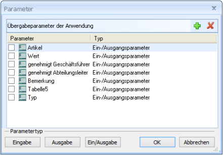 Der neue Parameter wird in der Liste der Übergabeparameter der Anwendung angezeigt.