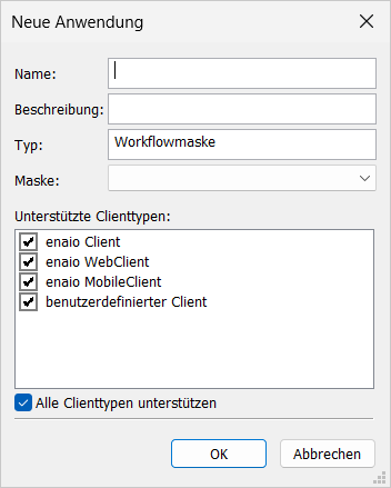 Zurzeit sind nur Anwendungen vom Typ 'Workflowmaske' möglich.