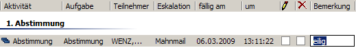 Die Felder Betreff und Bemerkung enthalten die entsprechenden Einträge aus der Initialisierung, das Feld Lauflistenbemerkung den Eintrag, der in der Laufliste als Bemerkung für diese Aktivität angegeben wurde.