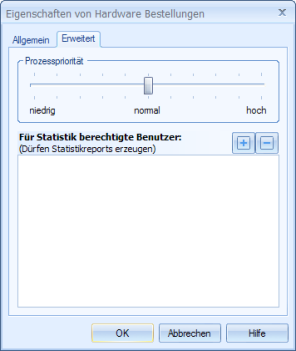 On the Advanced tab, you can define the process priority and specify users for statistics reports.