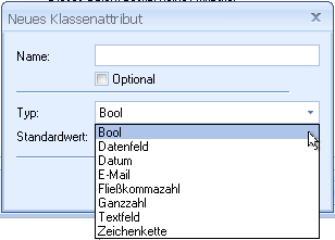 Enter a name, specify whether or not the attribute is optional, select a type and a default value.