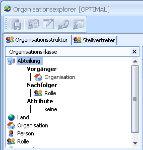 Organizational classes are displayed on the Organizational structure tab in the organization explorer.