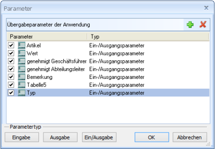 Applications consist of a form and transfer parameters. The transfer parameters are the dialog elements of the form and further parameters that are accessed via scripts.