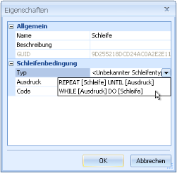 You can also specify script code. The script will be executed before the loop condition is checked. Via the script you can access and change the current variable values. Changes are only taken into account for checking the conditional term, not returned to the process.