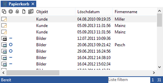 Wenn Sie den Papierkorb geöffnet haben, dann stehen Ihnen über die Menüband-Registerkarte Papierkorb folgende Funktionen zur Verfügung: