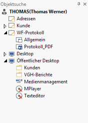 Dans le volet Recherche d’objet, vous y trouverez les types de classeur avec les types de registre et de document attribués, ainsi que les répertoires de bureau.