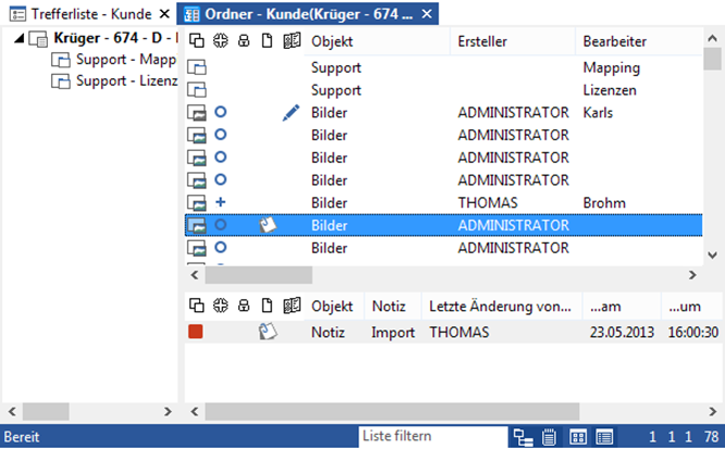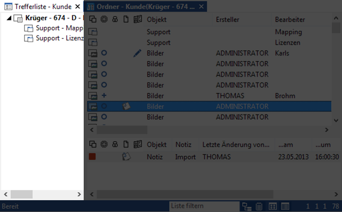 Si vous ouvrez un classeur ou un registre à partir d'une liste de résultats à l'aide du bouton Ouvrir ou en double-cliquant, la fenêtre du classeur s'ouvre en tant qu'emplacement. Via les paramètres (onglet de ruban ENAIO > Paramètres > Fenêtre de résultats > Afficher les lignes de séparation), choisissez d’afficher la barre d’état et les lignes de séparation ou non.